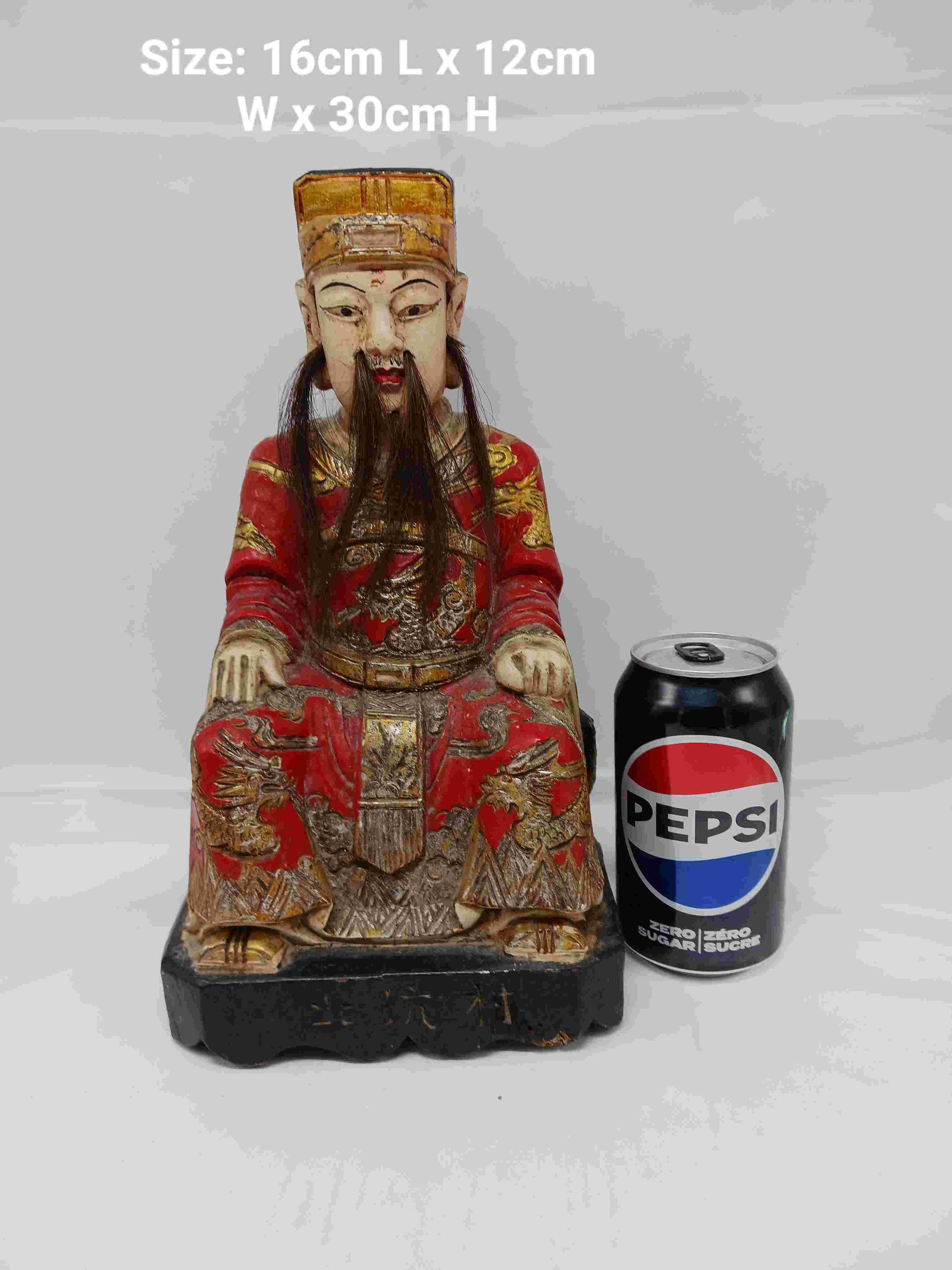 Introducing the 20th century wood carving of the God of Wealth, a testament to its eternal beauty. This God of Wealth statue is handcrafted with intricate details and exudes sophistication and prosperity. This unique piece adds a regal impact to your home or office.