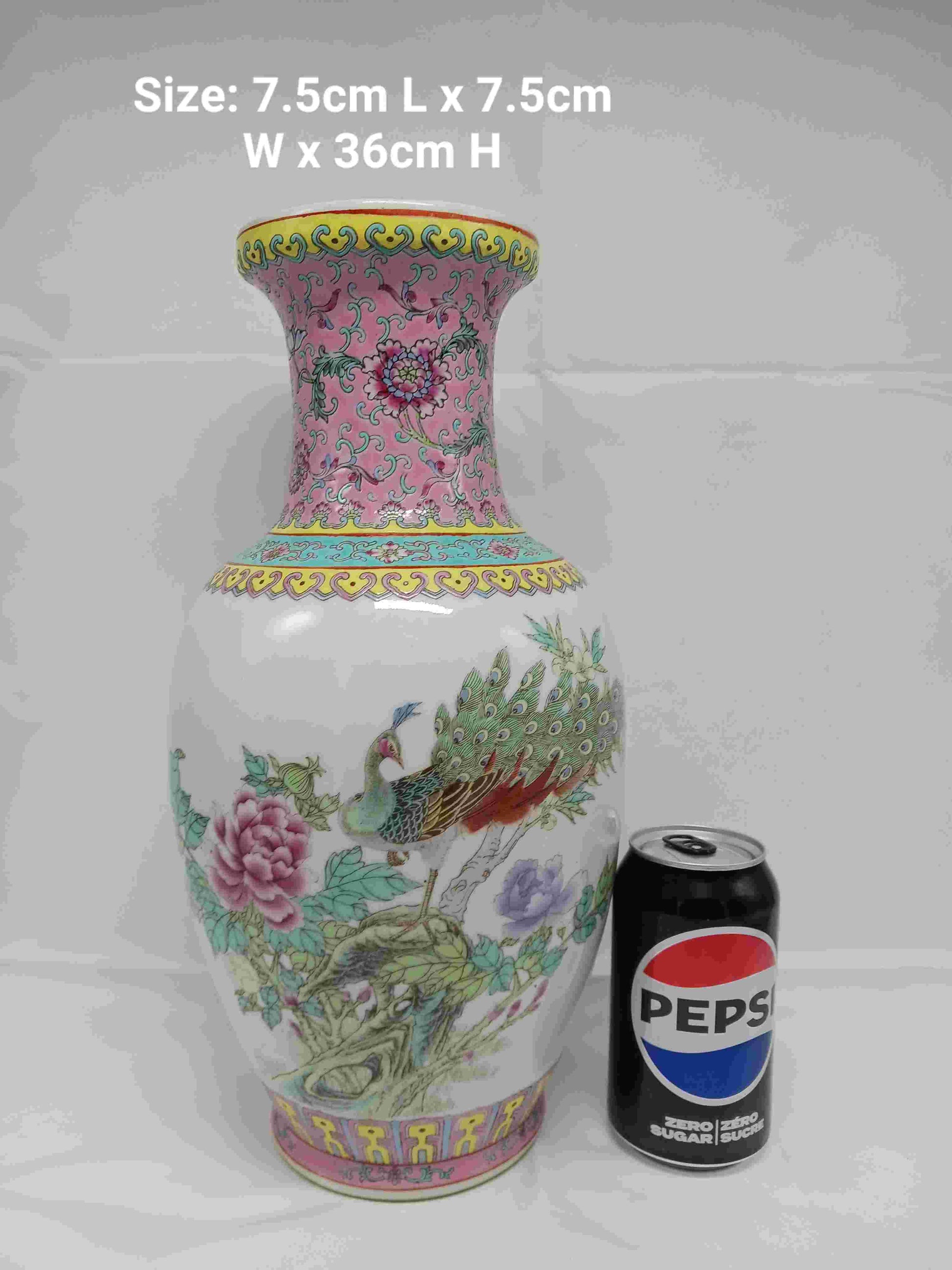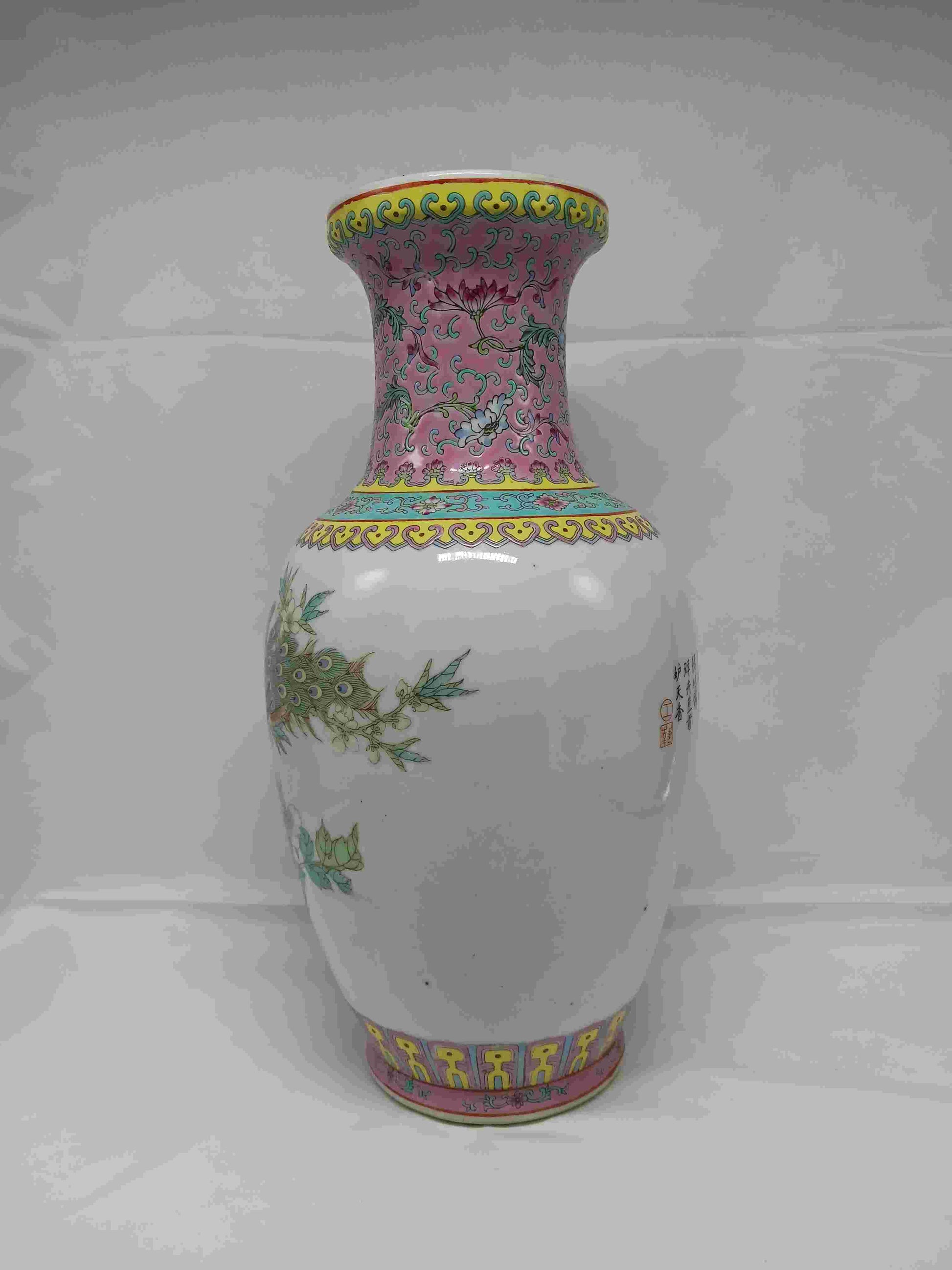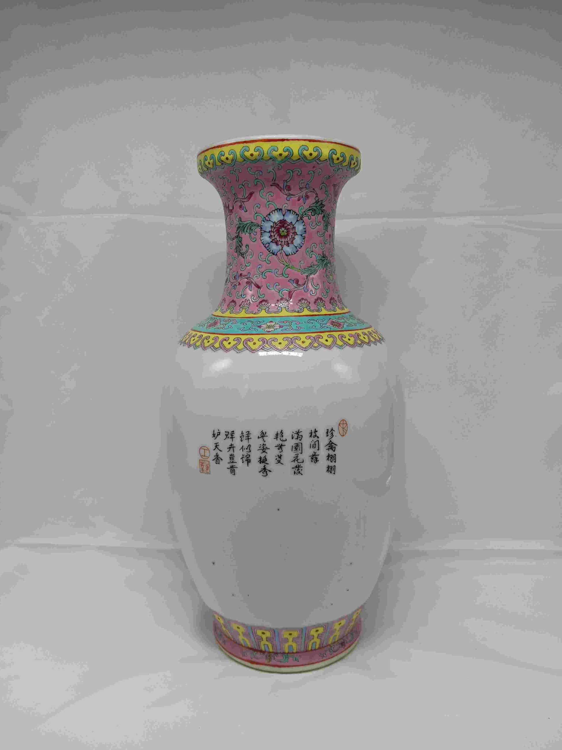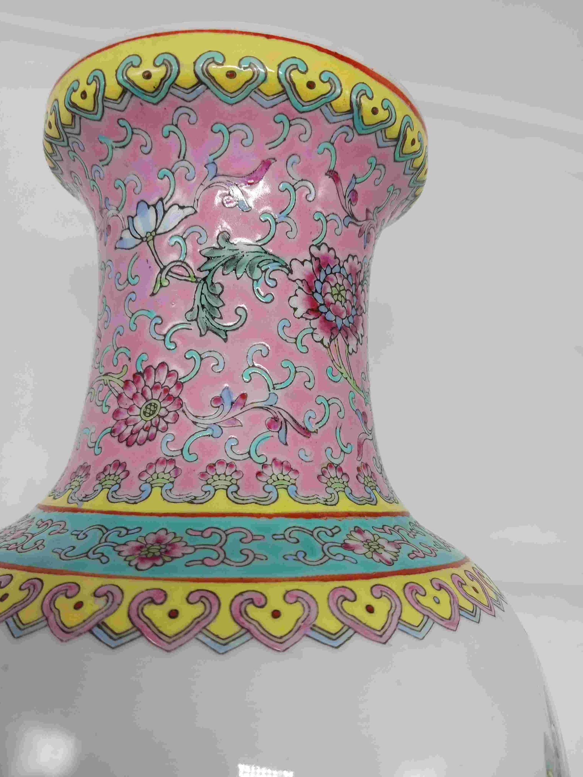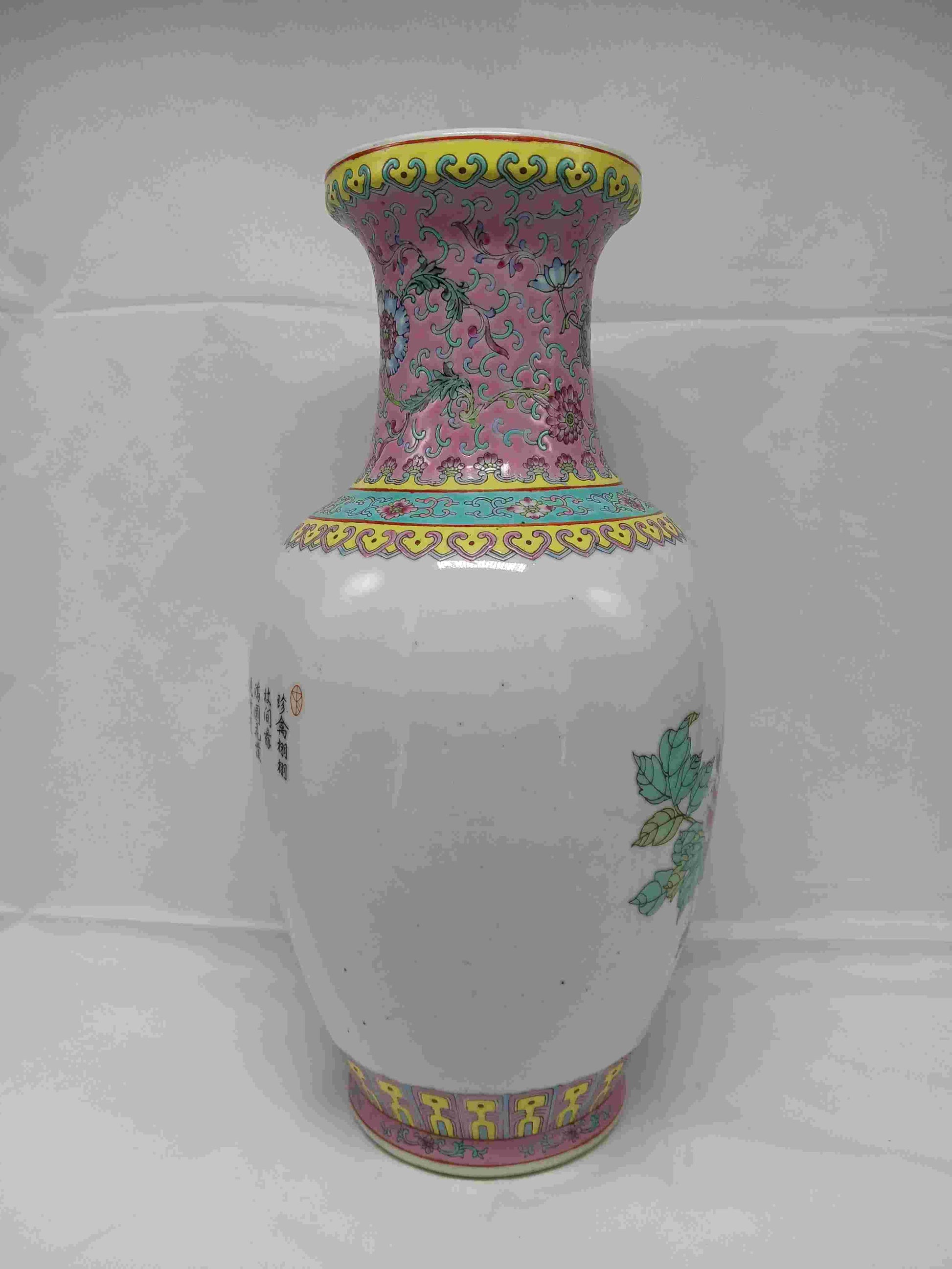 Celebrate the beauty of 60s art with this delicate pink flower and bird vase. Inspired by the delicate brushstrokes of the era, this unique piece adds a touch of sophistication to art , is rare and can be yours today.